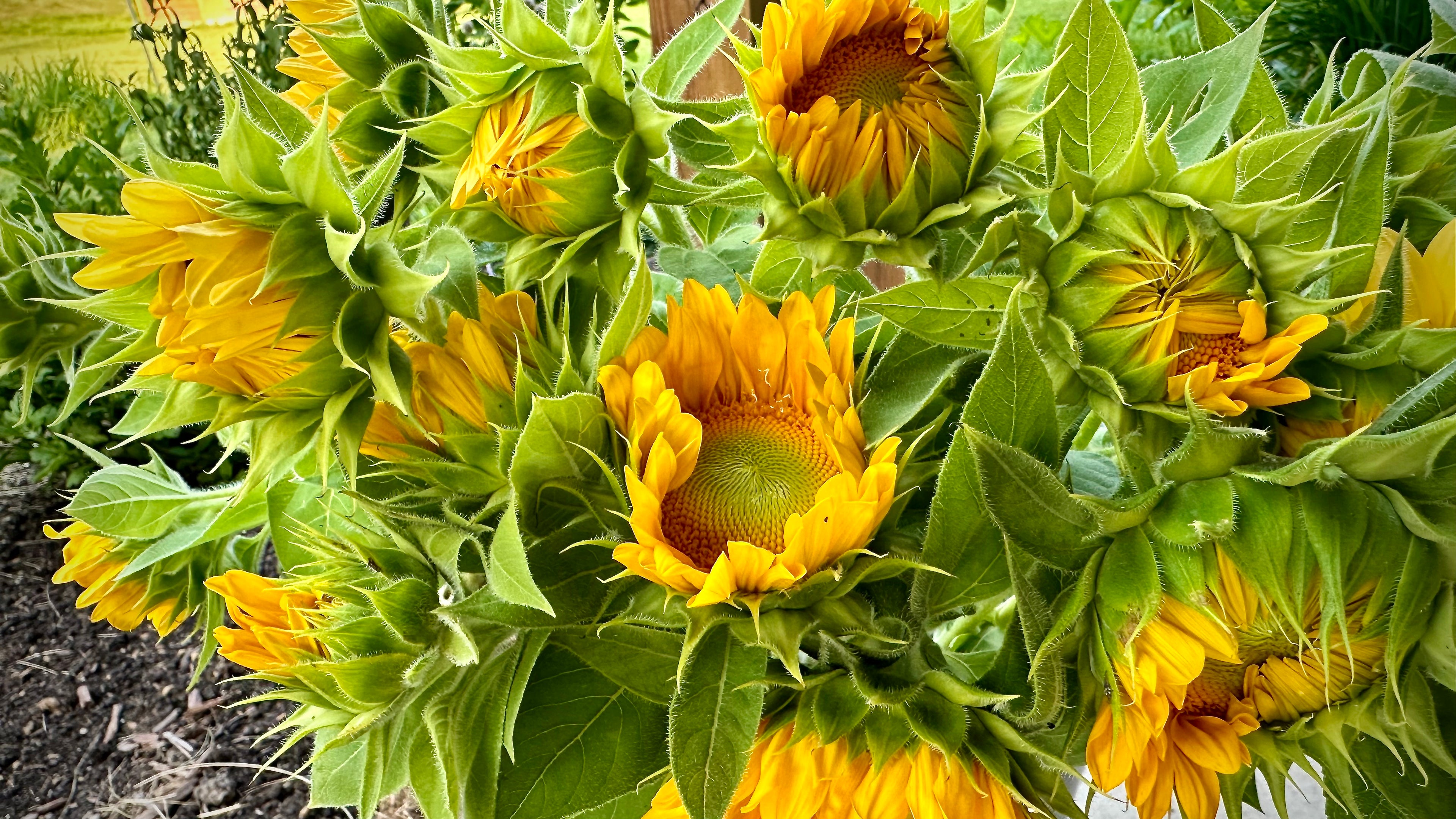 Basil - Cosmos - Echinops - Gladiolus - Gomphrena - Anise Hyssop - LILIES - LISIANTHUS - Mountain Mint - Nasturtium - Oregano - Sage - Scented Geraniums SUNFLOWERS - Zinnias